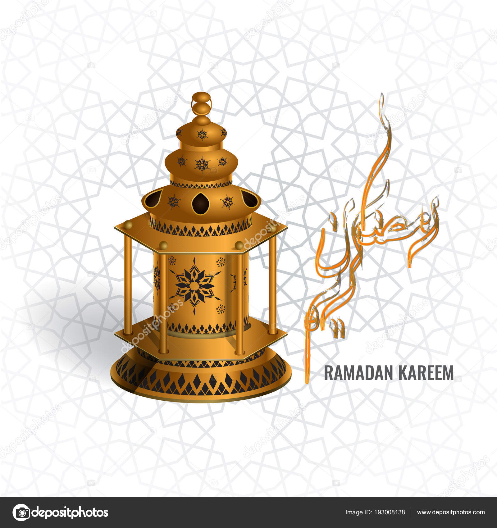 Vector Ramadan Kareem Lantern With Arabic Water Color Brush Calligraphy And Geometric Ornament For Greeting Card Or Illustration 115036588 Megapixl