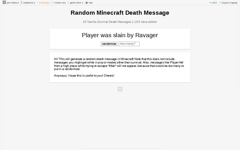 Random Minecraft Death Message Perchance Generator