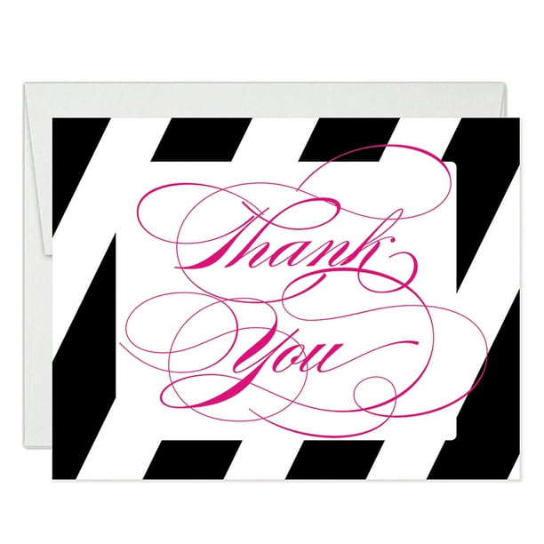Pink Stripes Elegant Script Thank You Cards With Envelopes Pack Of 25 Folded Blank Calligraphy Thank
