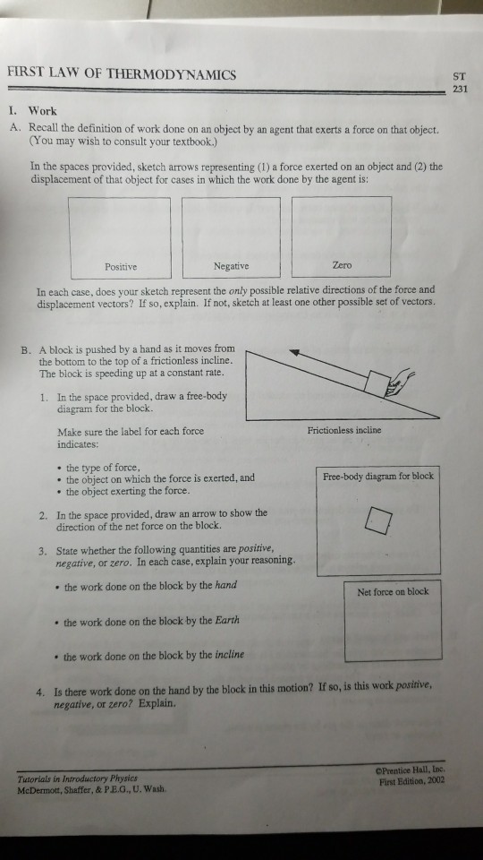 Solved First Law Of Thermodynamics St 231 I Work A Reca Chegg Com