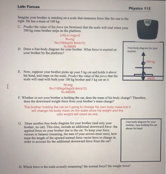 Solved Lab Forces Physics 112 Imagine Your Brother Is St Chegg Com