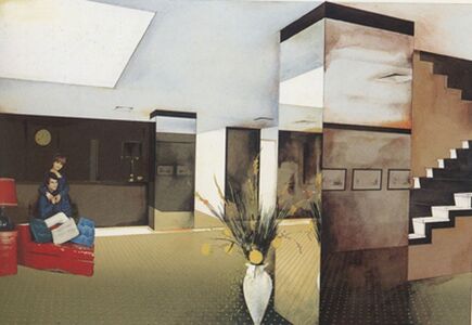 Though he used a wide variety of techniques during his career his most recognizable works such as Study for a Fashion Plate 1969 were done in collage.