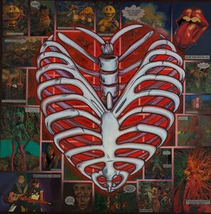 His work is loaded with the iconography of his generation exploring the range and power of a deeply American symbology using pop imagery as a metaphor. Flag-based design may be comforting to the average patriotic New Yorker until you realize he is offering a not-so-subtle critique of mindless consumerism that indicts probably everyone who passes it. He often brings together two or more recognizable iconic images into abrupt juxtapositions creating uncanny Pop Art.