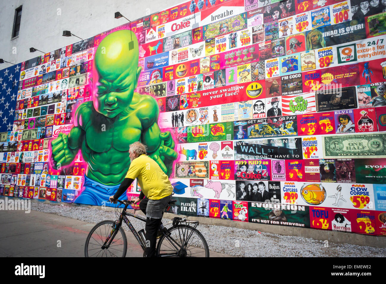 He is the father of AGIT-POP a hybrid of Pop Art that is fueled by a more personal hands-on socially responsible attitude. Ron English coined the term POPaganda to describe his trademark fusion of high and low imagery mixing superheroes and comic strips with art history iconography in his prolific and ubiquitous paintings billboards and sculptures. The piece was originally painted on the outside wall of a bargain shop in north London back in 2012 was removed a couple months later and somehow resurfaced at an art auction in Miami.